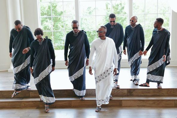 Ubu bukwe bwabereye muri Amerika, gusa imyambaro bambaye yakorewe mu Rwanda ikozwe na Isha Collection yanambitse Platini mu bukwe bwabaye muri Werurwe 2021.