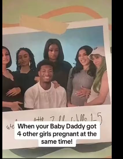 Yagaragaje ifoto y’uyu mugabo azengurutswe n’aba bagore batanu yateye inda bose icyarimwe, hamwe n’amagambo yanditseho ngo: ’Urakaza neza Zeddy Wills muto 1 kugeza 5.’